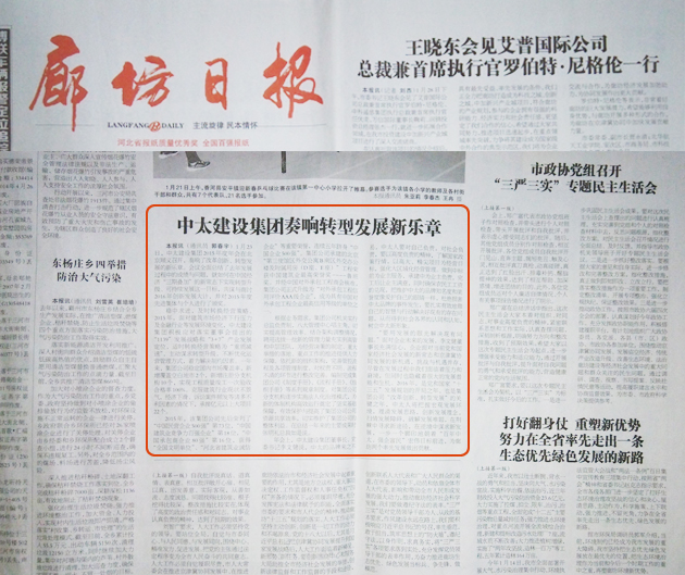 廊坊日報1月29日報道了中太建設集團奏響轉型發展新樂章
