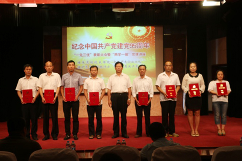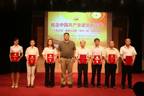 大會由集團黨委委員燕振義同志代表集團黨委宣讀了“一先三優”表彰決定;對建設集團機關第一黨支部、房地產開發集團黨支部、廊坊市中太投資公司黨支部、第九建安公司黨支部、工程檢測公司黨支部、勞務公司第一黨支部、物業公司黨支部;李文成等8名“優秀黨務工作者”和張霞等38名“優秀共產黨員”,謝良波等8名“優秀黨小組長”予以通報表彰。