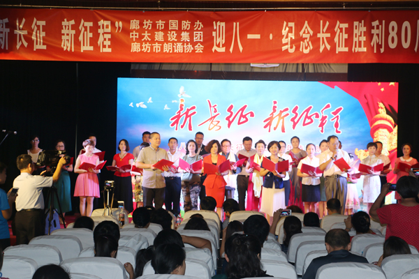 7月30日上午,由市國(guó)防教育辦公室、中太建設(shè)集團(tuán)主辦,廊坊市朗誦協(xié)會(huì)承辦的“新長(zhǎng)征新征程”迎八一·紀(jì)念長(zhǎng)征勝利80周年詩(shī)歌朗誦會(huì)在中太大廈二樓報(bào)告廳舉行。來(lái)自市國(guó)防教育辦公室、市朗誦協(xié)會(huì)、中太建設(shè)集團(tuán)及廊坊區(qū)域內(nèi)的朗誦愛好者齊聚一堂,以詩(shī)歌朗誦的形式共同迎接中國(guó)人民解放軍89歲生日,共同慶祝中國(guó)工農(nóng)紅軍長(zhǎng)征勝利80周年。