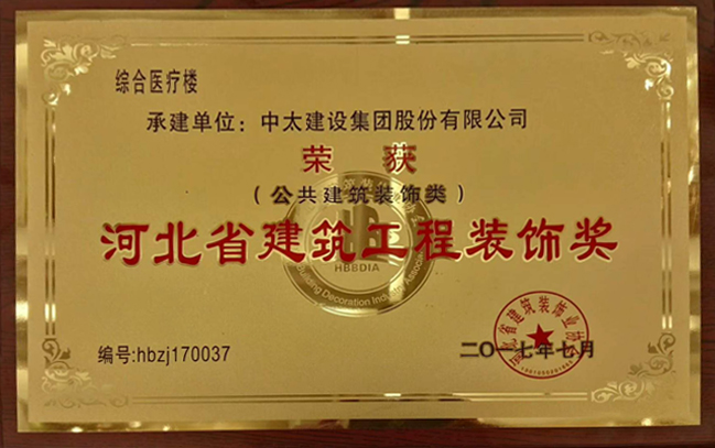 近日,由河北省建筑裝飾協會傳來喜訊,由中太建設集團承建的中國石油天然氣集團公司中心醫院綜合樓項目榮獲河北省建筑工程裝飾獎。