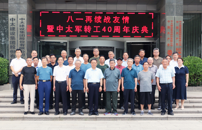 今年8月1日,是中國人民解放軍建軍98周年紀念日,在這個特殊的日子里,我們又迎來了原中國人民解放軍基建工程兵三十六支隊第352團集體轉業40周年慶典。歡聚在我們親手建造的中太大廈,隆重慶祝中太建設集團軍轉工40周年。會上,集團黨委領導向為中太建設集團的發展做出卓越貢獻的老領導、老戰友、老同志和集團公司全體員工致以誠摯的問候和崇高的敬意!
