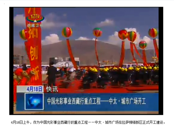 西藏電視臺報道中太建設(shè)集團投資建設(shè)的中太·城市廣場正式開工建設(shè)