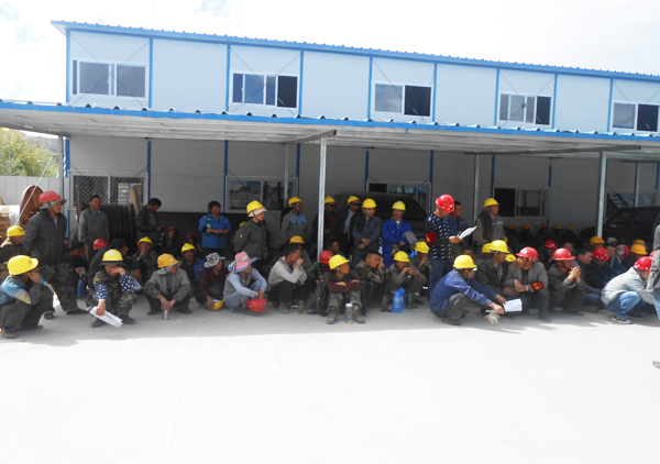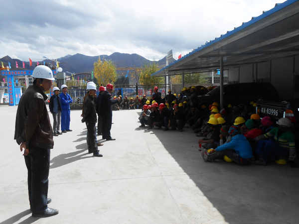 為了不影響現(xiàn)場施工,這次教育活動(dòng)被安排在午休時(shí)間。烈陽高照,數(shù)百名工人整齊地排坐在拉薩指揮部大院,接受項(xiàng)目經(jīng)理高進(jìn)來的安全知識(shí)培訓(xùn)。培訓(xùn)過程中,高經(jīng)理首先親自示范了佩戴安全帽的正確方法,并講解了“安全三寶”的重要性,從“安全意識(shí)”到“三不傷害”,從“臨邊洞口防護(hù)”到“用火用電”,從“特殊工種”到“塔吊等大型機(jī)械”,最后也講到了生活區(qū)安全管理和環(huán)境衛(wèi)生。高經(jīng)理從廣大職工切身利益的角度出發(fā),對一線安全生產(chǎn)須知進(jìn)行了生動(dòng)形象的描述。隨后,安全部負(fù)責(zé)人王子成針對施工現(xiàn)場的薄弱環(huán)節(jié)和安全隱患,也向現(xiàn)場工人提出了若干點(diǎn)安全要求,引起了在場工人的高度重視。
