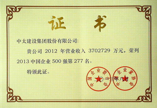 中國企業500強證書